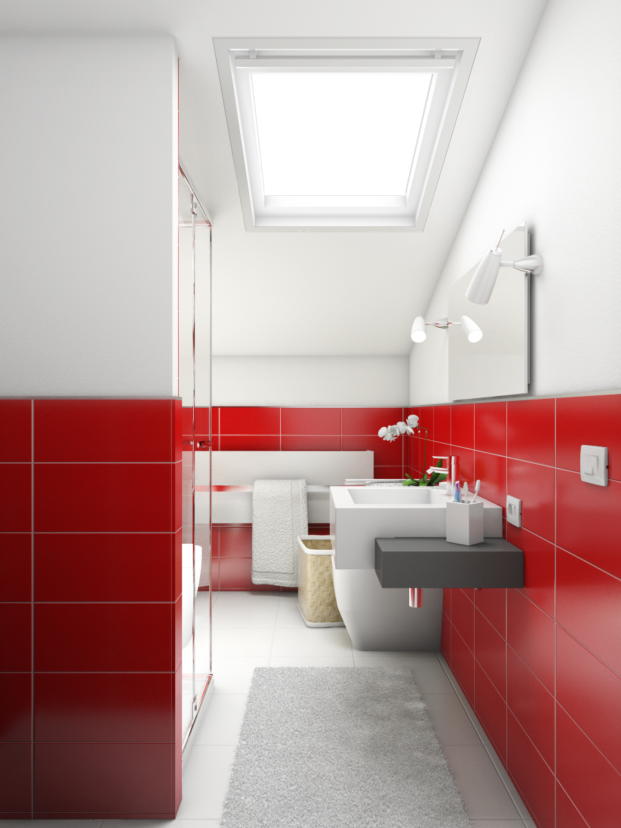 Un bagnetto di servizio da realizzare nel sottotetto, dove l'unica fonte luminosa è dato da un lucernaio.