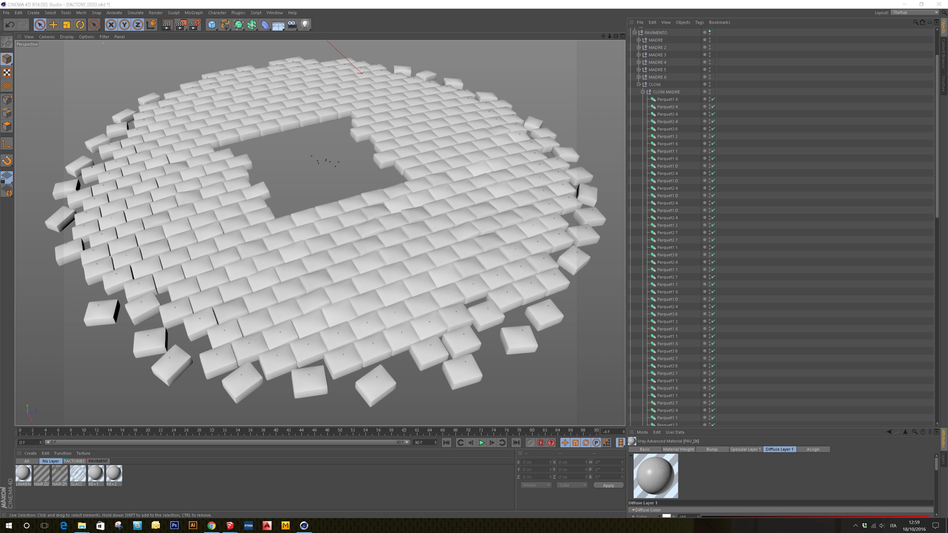 3) A questo punto ho ruotato manualmente in maniera mirata alcune delle istanze, in maniera del tutto casuale, in modo da dare un effetto degrado/pavimento saltato.