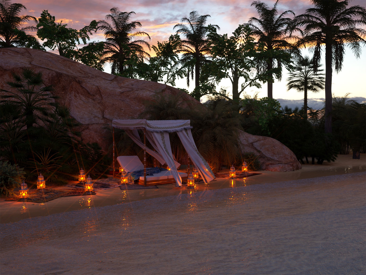 Anche il legno del baldacchino lo vedo un pò troppo nuovo forse e la roccia alle spalle forse troppo liscia in funzione della texture che hai applicato. Ma ripeto, già ho problemi io con le mie scene sulle quali a volte fatico ad essere super partes, quindi son solo appunti che noto da esterno.