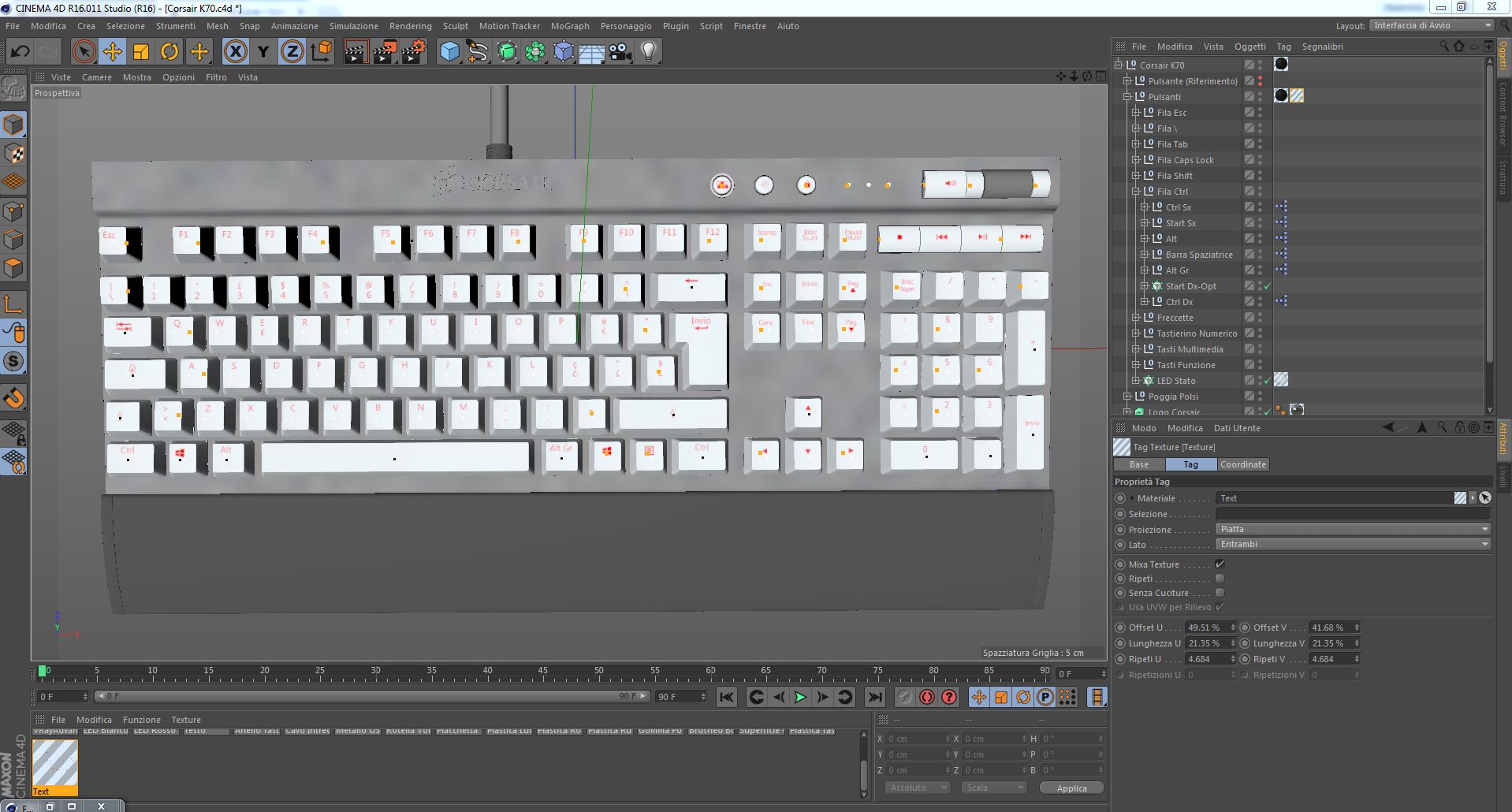 Nel mio specifico caso VRay mi impediva di applicare un'unica texture sopra tutti i tasti perchè erano tanti oggetti singoli contenuti dentro ad un nullo a cui applicavo il materiale, quindi ogni oggetto veniva mappato allo stesso modo e risultavano tutti con la stessa porzione di Texture.