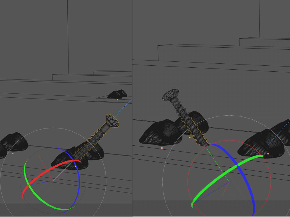 nell immagine di destra vi vede come la vite ruoti sull asse assoluto e non su quello relativo (verde)