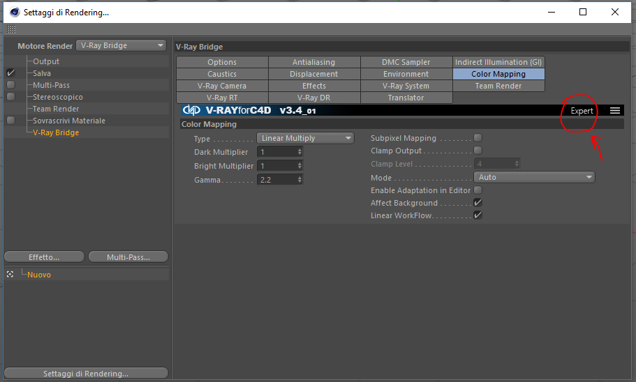 su cinema 4d ho vray 3.4_01 e andando su color mapping per attivare subpixel mapping mi sono accorta che si sono type,multiplier, burn value e gamma. Come faccio ad avere le altre opzioni?