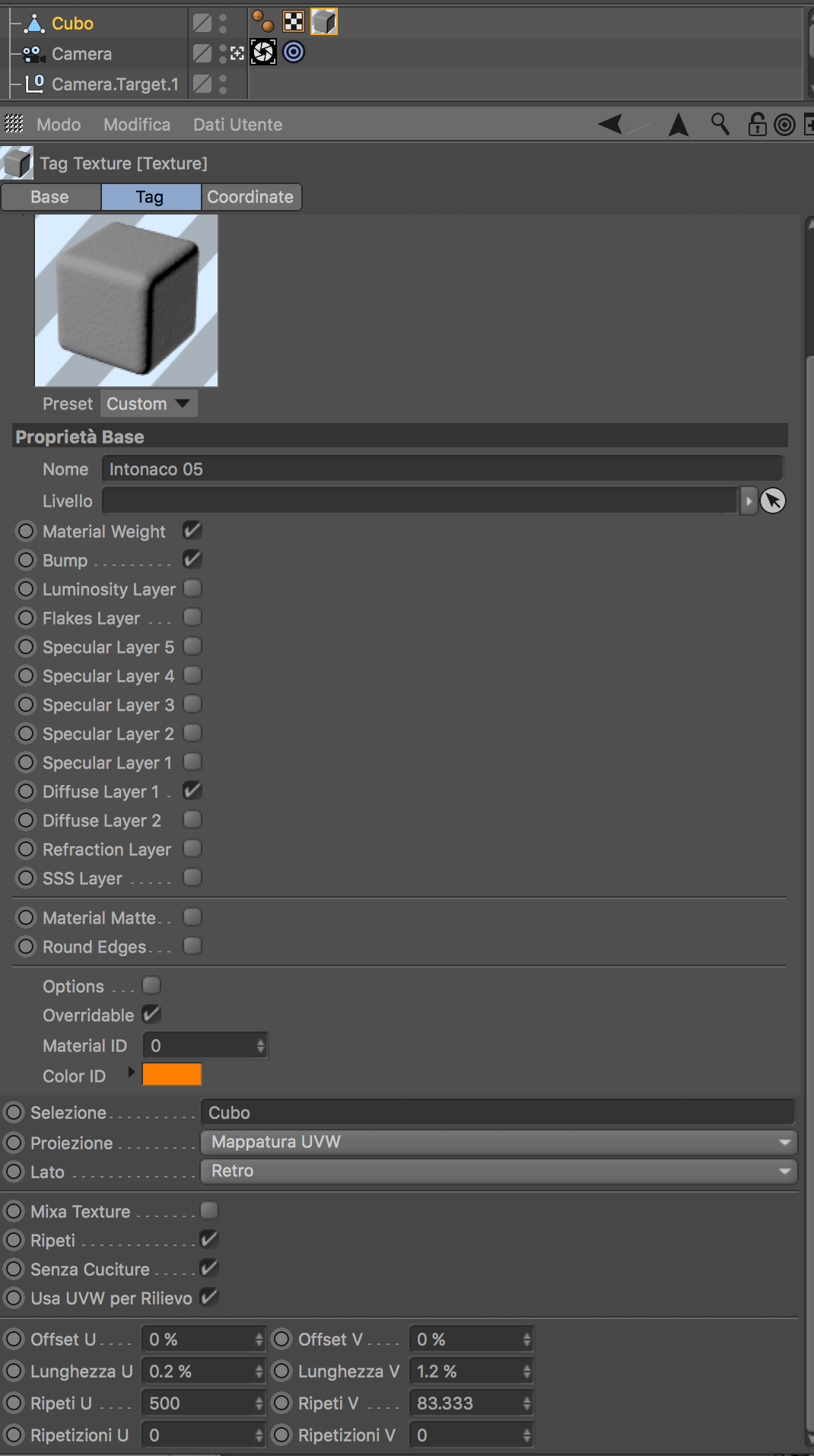 se quello che hai inserito dentro all'intonaco è uno shader procedurale come ad esempio un disturbo attenzione perché ha una sua dimensione interna che trovi dentro ai parametri dello shader