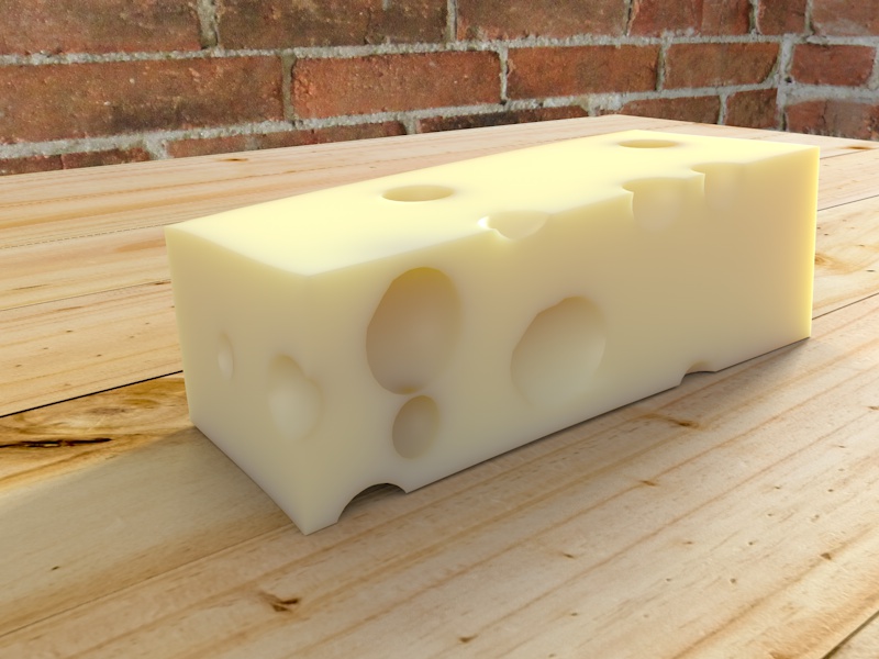 allora con le booleane lo puoi fare ma non è un tipo di modellazione che poi ti permette di ritoccare e modificare il modello, diciamo che è un metodo efficace ma più sbrigativo, mentre per forme organiche con tutti gli smussi del caso e irregolarità tipiche del formaggio ti converrebbe ricorrere alla modellazione poligonale.
