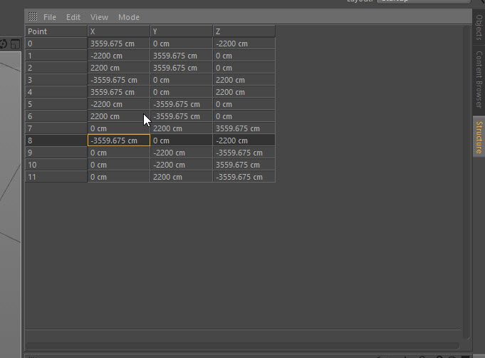 a questo punto dalla finestra di struttura dei punti cambia l'ordine dei vertici tenendo premuto su un vertice e spostandolo su e giù per la tabella.