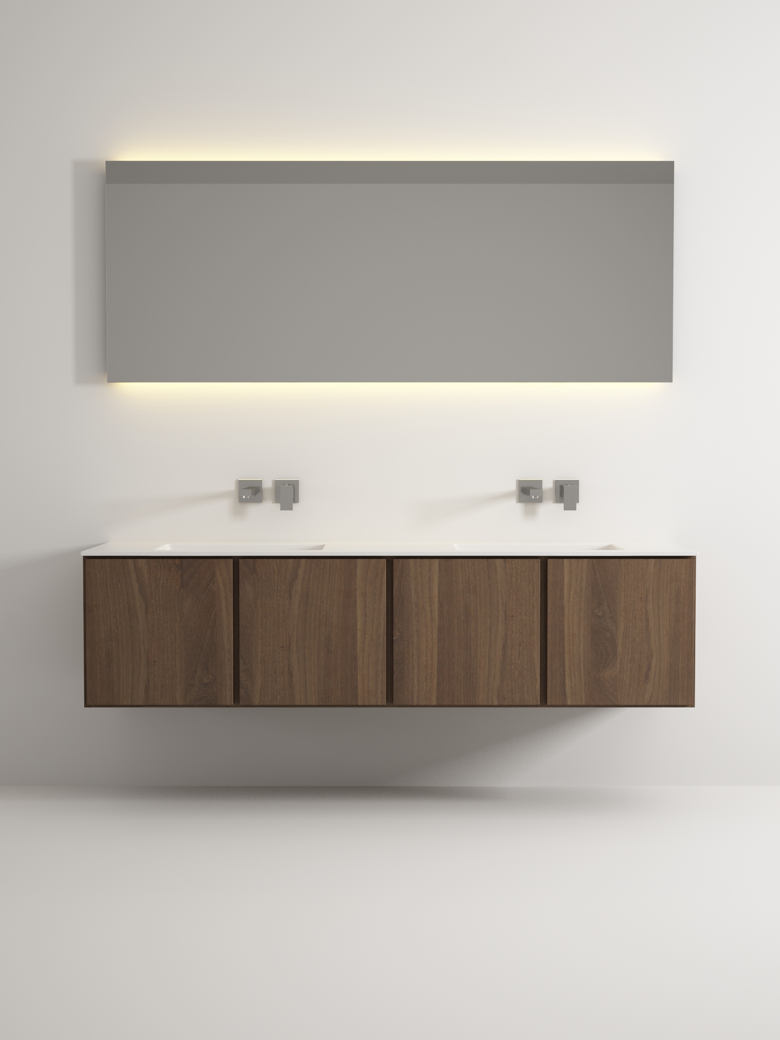 Come si chiama non saprei e in tutta onestà è un bagno che non mi torna. Chi illumina il volto di chi si specchia? Chi pulisce il muro dagli schizzi di acqua e sapone? Spazzolini elettrici, phon, rasoi, piastre liscianti, depilatori... tutto wireless? Gli asciugamani usati me li porto a lavoro? E i profumi, il sapone, le zanzare uccise sulla parete? Poi in tutto 'sto minimalismo mi guardo allo specchio e capisco di essere inadeguato, di non essere all'altezza di tanta perfezione e pulizia delle linee.