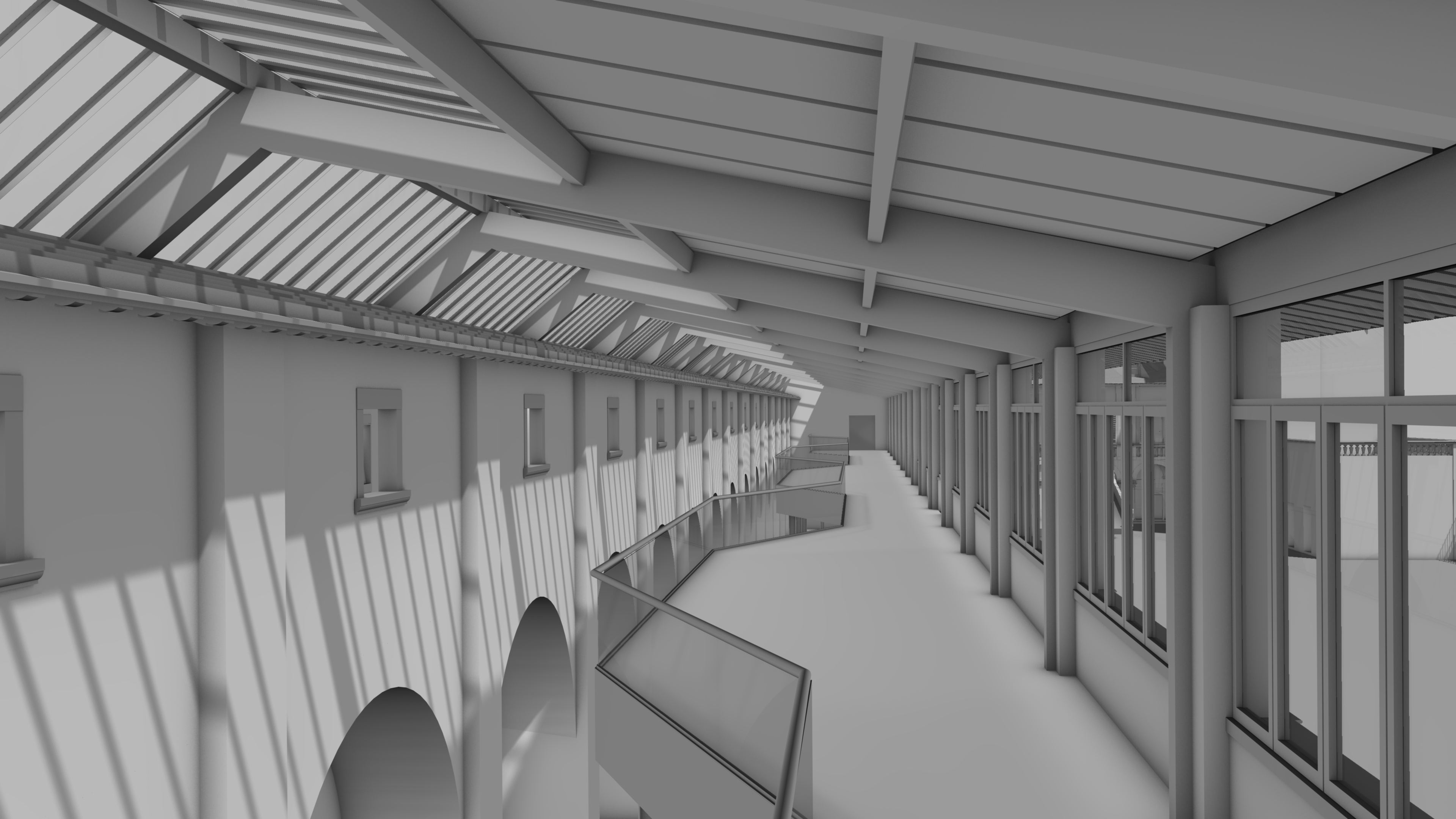 in scena piani orizzontali schiariti da materiale con luminanza al 40%
