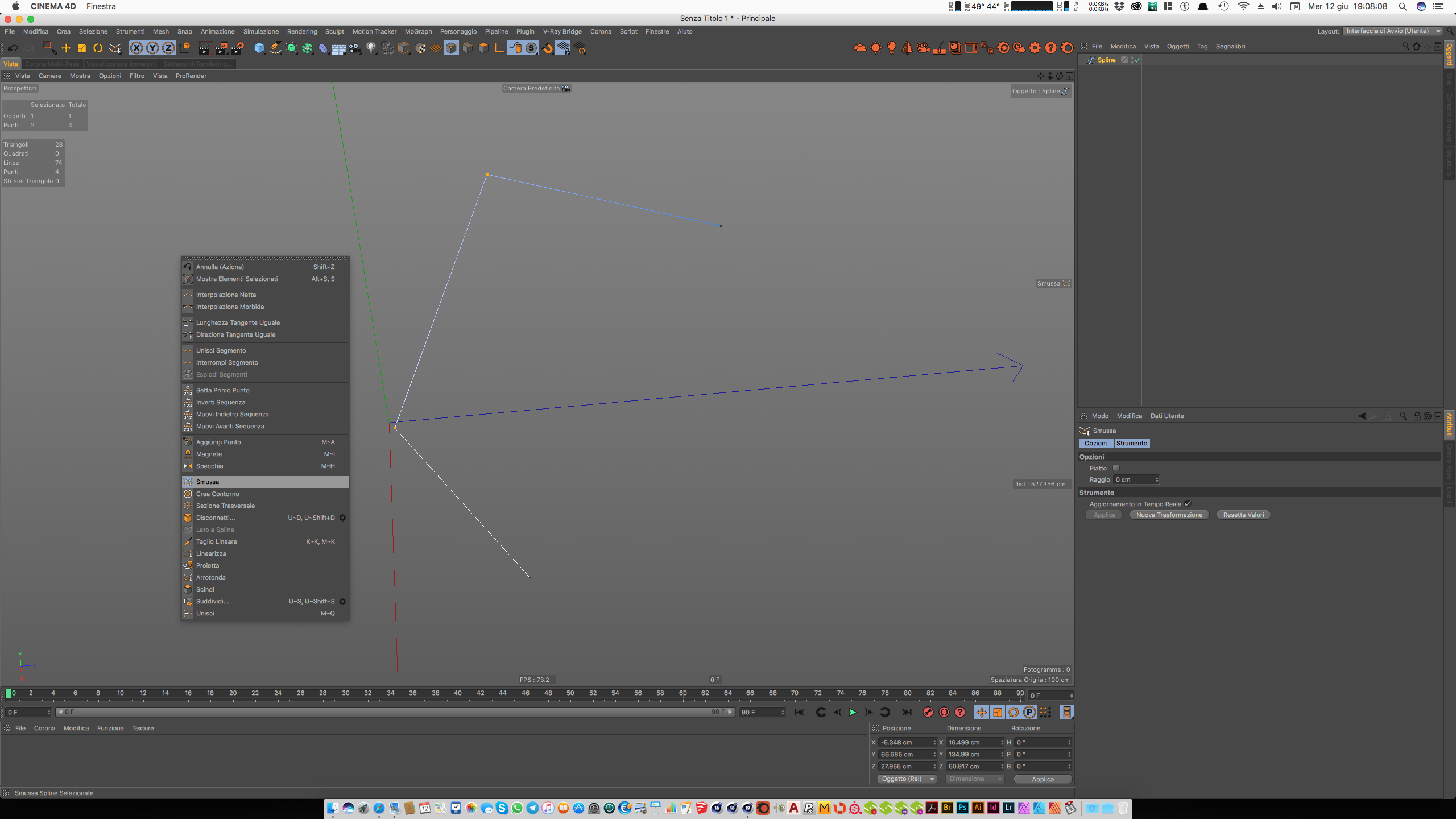 A questo punto fai click con il tasto dx del mouse e selezioni smussa come nello screenshot che ti allego....