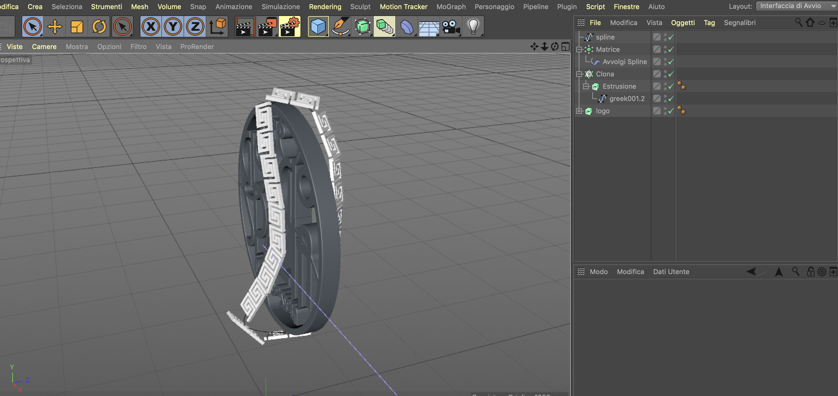 avrei bisogno di rendere il mio campione già estruso di greca, una specie di corda/catena che si snodi in lungo e in largo intorno al logo e che sia scorrevole, senza che risulti frammentata come nell'immagine.
