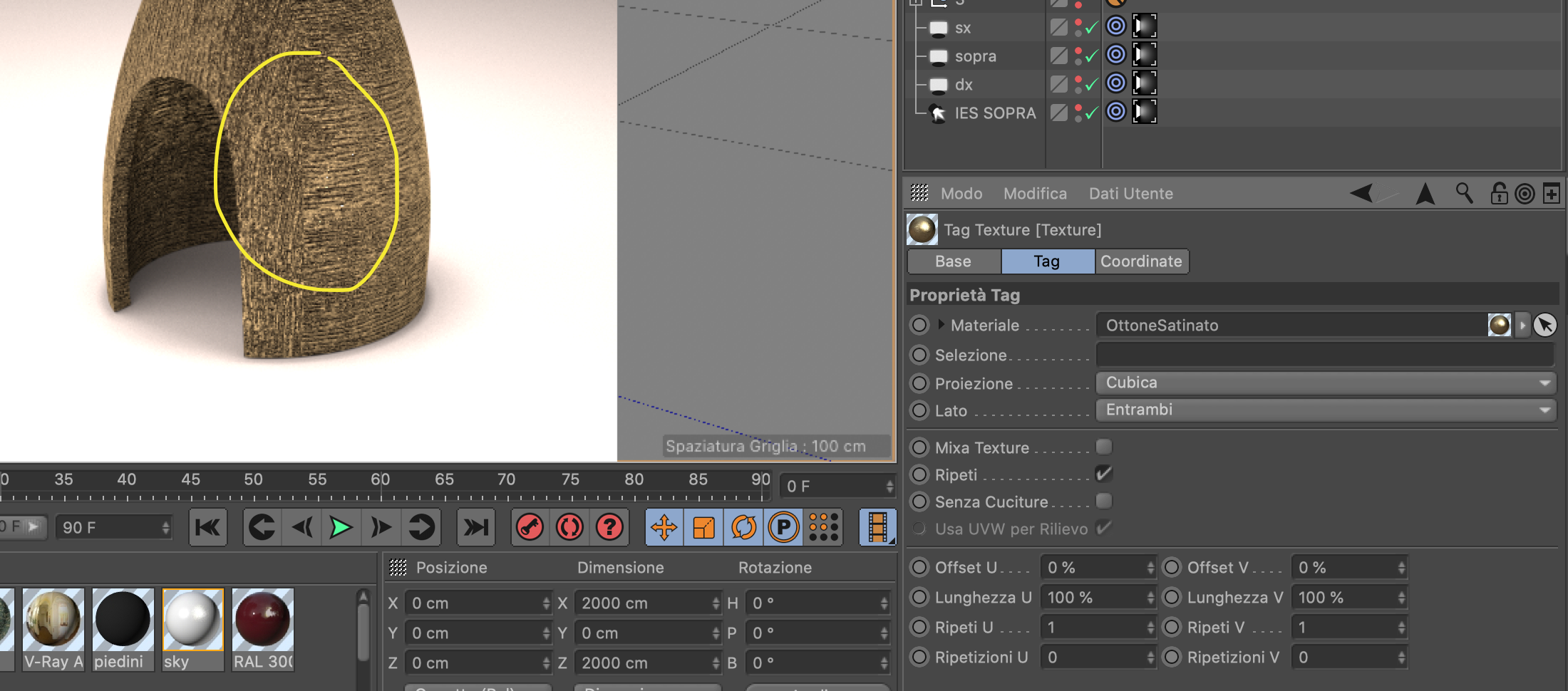 Sapete come posso risolvere questo problema? in sostanza vorrei che la texture non si deformasse e non avesse diversità di scala tra "sopra" e "sotto", così facendo posso aggiustarla di conseguenza ma se non sistemo questo "salto" di texture non posso proseguire oltre.