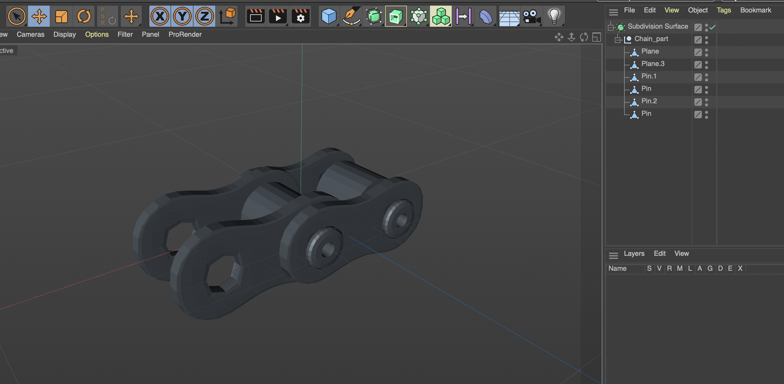 La Sub-d potresti metterla alla fine per lisciare e aumentare i poligoni della catena solo una volta che è stata completata e arrangiata.