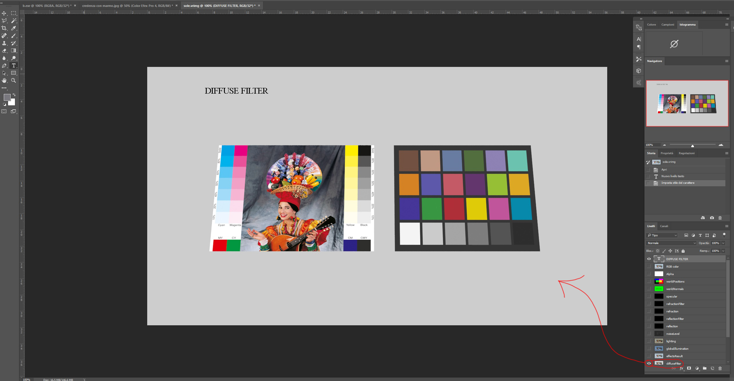 - il canale Diffuse funziona solo se uso una Standard Camera. Se uso la Phisical camera ottengo un Diffuse molto scuro. Bug confermato dall'assistenza ChaosGroup alla quale avevo scritto sei mesi fa ( https://www.c4dzone.com/it/forum/viewto ... 3&start=10 ). Il Diffuse mi serve per recuperare il colore originale di pavimenti e rivestimenti senza influenze del colore della luce o dovuto a oggetti colorati circostanti, sovrapponendo un livello "Colore" in Photoshop.