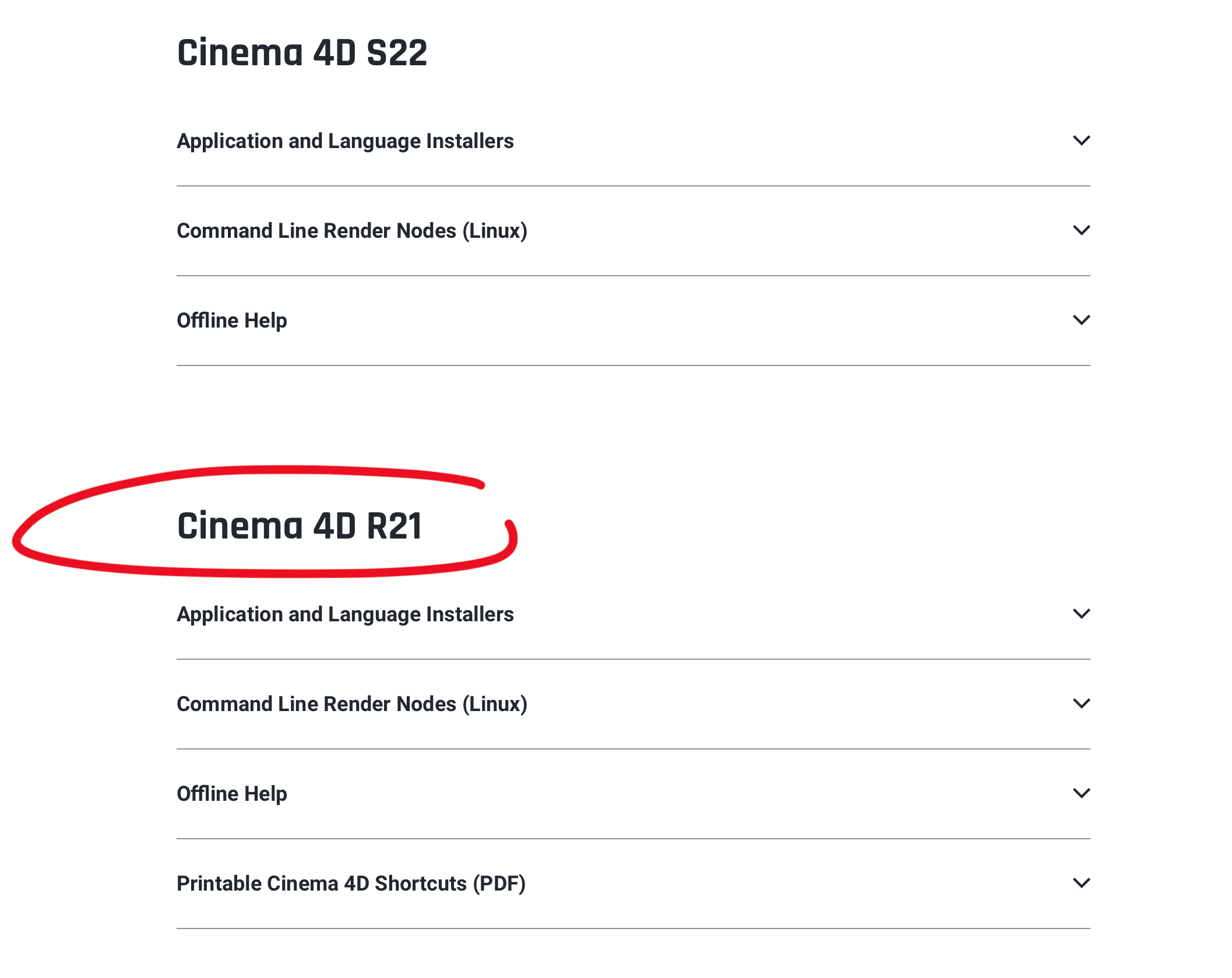 ciao! nel tuo account Maxon, alla sezione DOWNLOADS, puoi caricare tutte le versioni di cinema4D...ma puoi arrivare fino alla R21...indietro non si può' più andare...:)