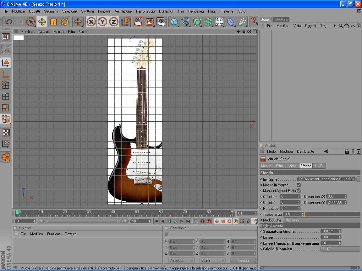 Come si può vedere all' importazione della chitarra viene creata solo una parte come sfondo.
