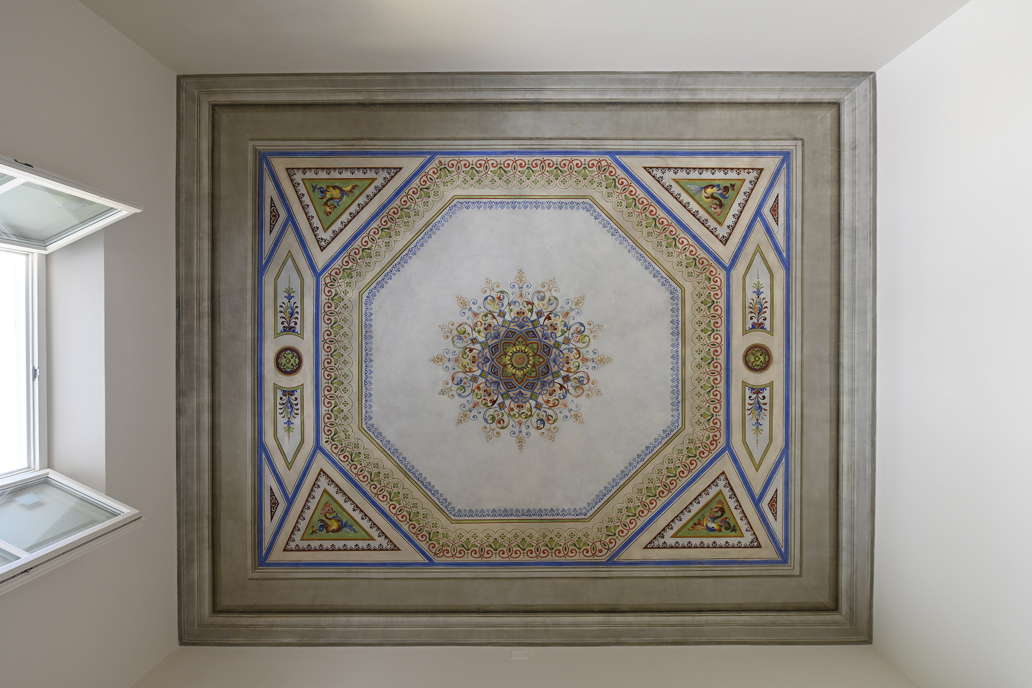 Mi è capitato diverse volte di lavorare su appartamenti di questo tipo stando a Firenze, e in genere faccio una miriade di foto il più possibile ortogonali a tutto l'affresco e ricreo poi dopo su Photoshop, un lavoro immenso :D