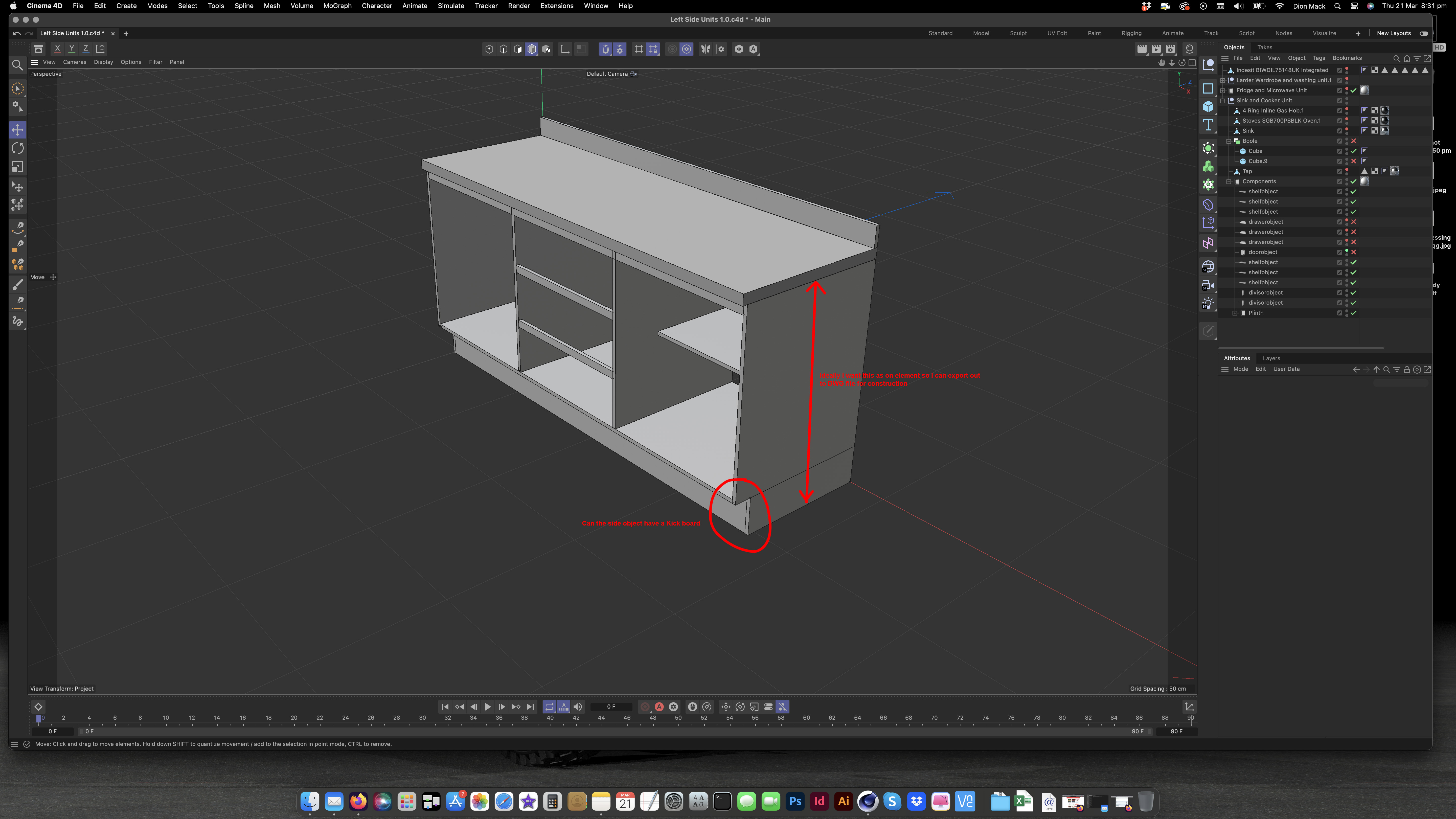 Is it possible to make the sides of the object have a kick board recessed as shown in my manually built model in the attached images?