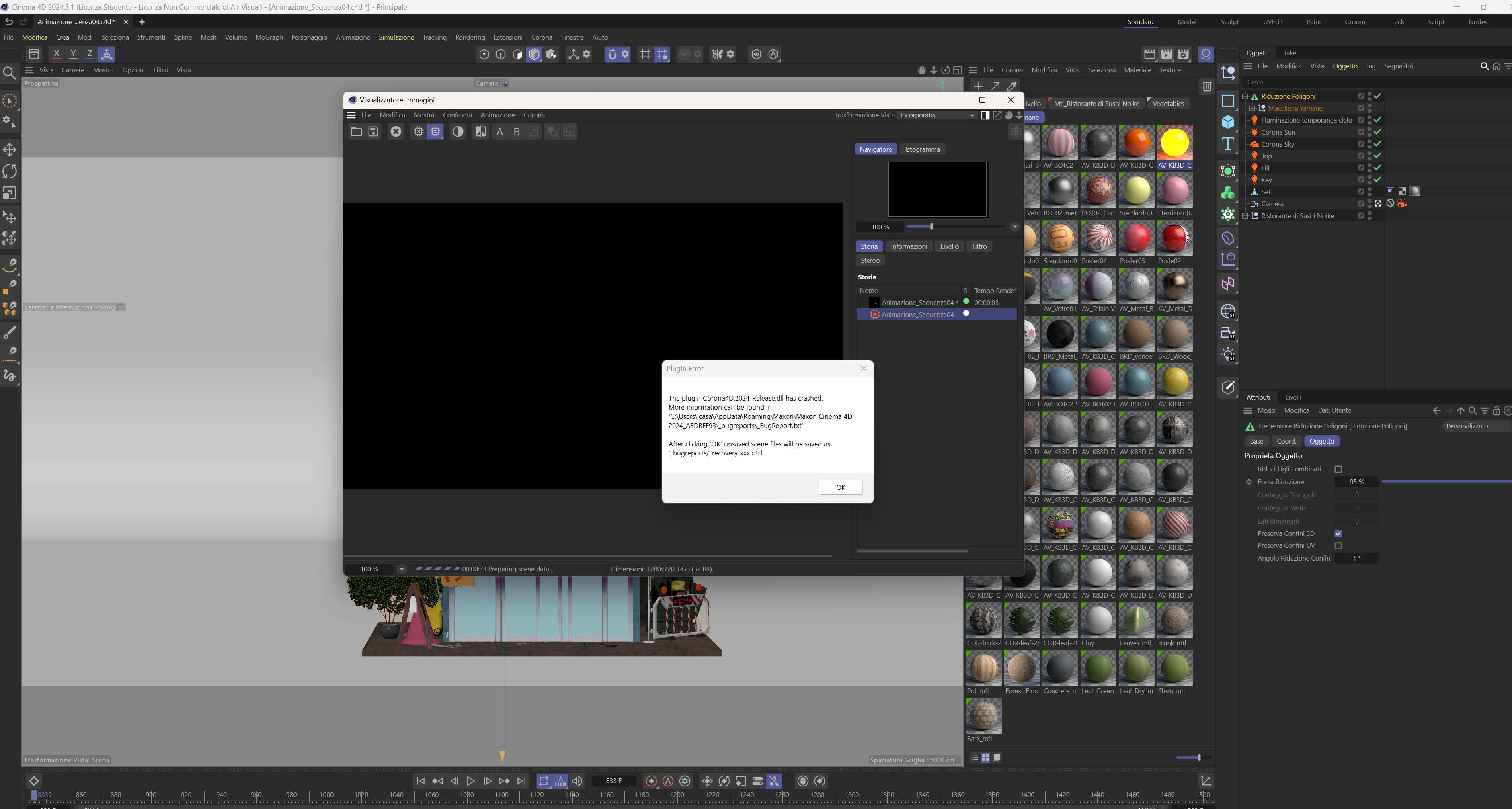 Messaggio d'errore che mi compare una volta lanciato il render e subito dopo la seconda immagine dove mi viene fuori il seguente messaggio.