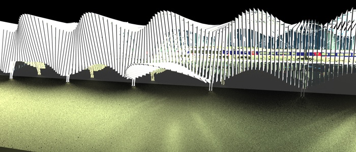 Mi sono preso un attimo un pausa dai render diurni per provare quelli in notturna. Ho inserito solo una luce omni tra il treno e la struttura in acciaio e le ho dato un colore giallino. Ho provato un po' di combinazioni per luce visibile, ma nn riesco a creare l'effetto buio fuori e ben illuminato dentro. Ho attivato anche (come mi ha insegnato reone) l'illuminazione globale e l'Ambiental Occlusion.