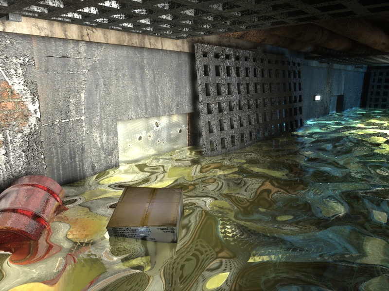 ok ho settato la decadenza, la luce visibile mi copriva un po tutto quindi lo eliminata, anche il displacement avevo tolto finchè non mi è venuta l' idea di aggiungere un po di dettaglio al muro e quindi l' ho dovuto utilizare perchè senza di esso sembrava un po piatto il muro anche con il rilievo, volevo rendere al massimo l' effeteto di ciò che emergeva sotto.. ho dato all' acqua un colorito + sul marrone facendola sembrare appunto un po sporca. ai bidoni ho dato una specularità metallica ma non vedo molto la differenza con quella plastica, la luce che stava in fondo l' ho spostata sull' altra parete. ho aggiunto anche una scatola di cartone che galleggia così tanto per riempire un po. nel rendering ho attivato il radiosity al 100% e usato l' anti aliasing geometria(userò quello migliore x il render finale). quei difettucci dell' acqua anche diminuendo la rifrazione ci sono sempre quindi ho un po spostato l' acqua per non far vedere quelli più rilevanti e per i restanti li riparerò con photoshop alla fine. poi x la IG non so a cosa ti riferisci quindi o trovato nelle impostazioni del radiosity 1/1 quindi ho messo 1/10 era questo??