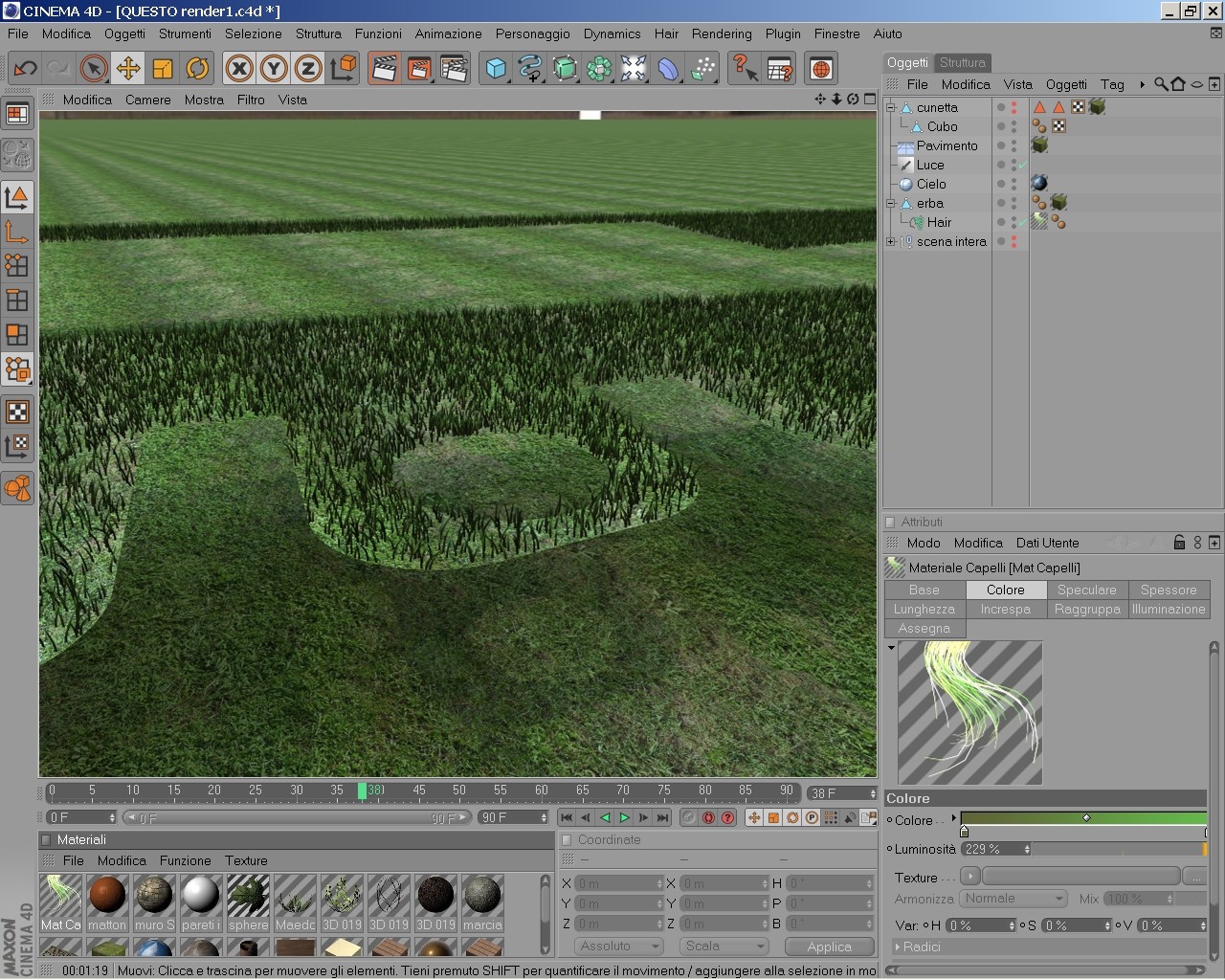 ma prima di cantare vittoria lo provo sulla scena originale.... ho fatto la prova di togliere il tag HAIR dalla luce e ho renderizzato. incredibilmente mi renderizzava lo stesso lerba... boh?