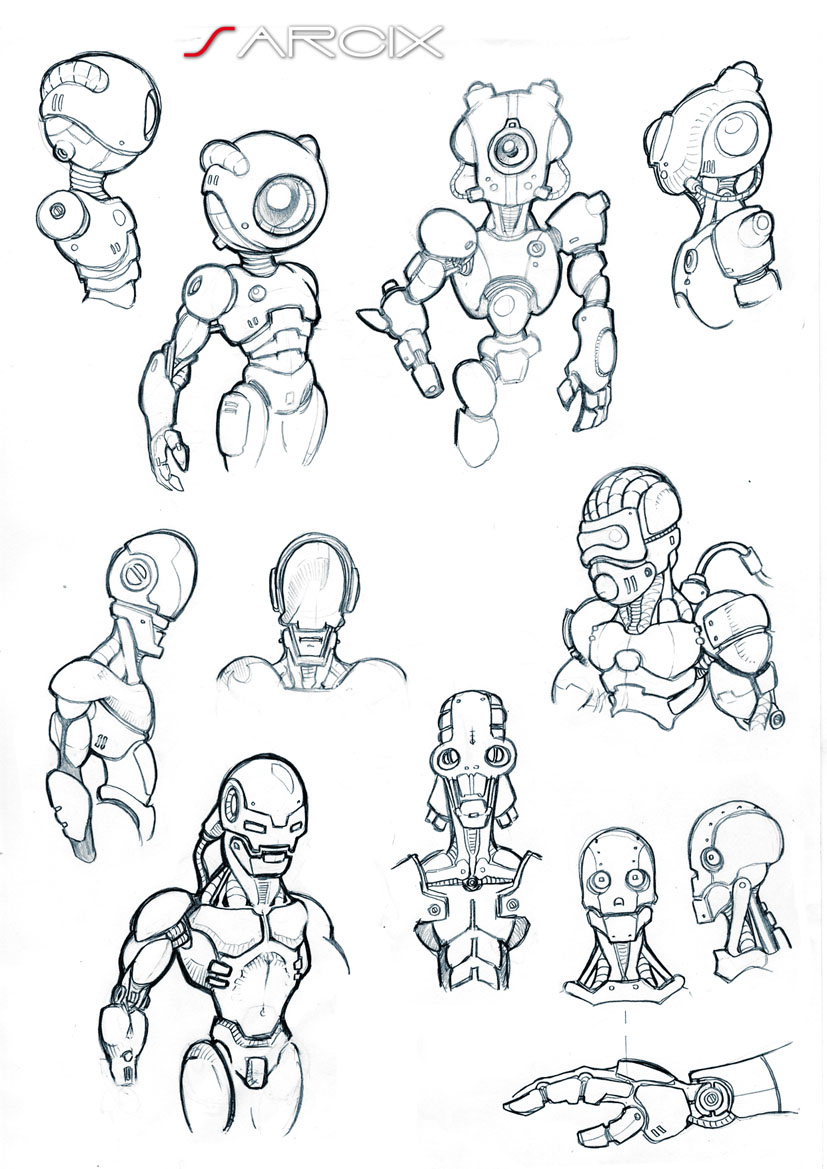 Tornando al mio post, ecco un'altro schizzo di alcuni robot, una prova di occhi e un test video... Sono prove che sto sperimentendo, per testare alcune cose...