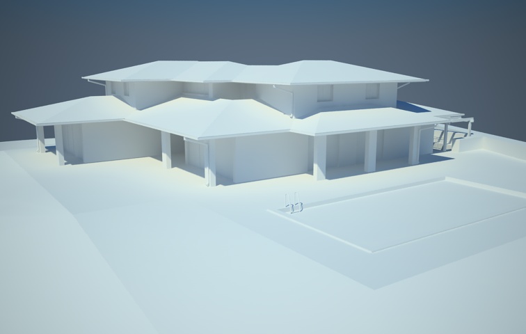 Volevo un vostro consiglio sulla illuminazione di questa villetta che non mi convince tanto, vi posto l'immagine e i settaggi usati spero siano tutti.