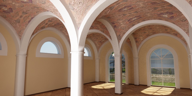 Hai ragione ma non ho trovato una mappa decente. Il soffitto a volte è una sega mentale mia... Ti dico solo che nella prossima sega mentale o farò una scala a chiocciola (un altro interno) o una rampa elicoidale. ci devo pensare.certo che come primo interno potevi renderti la vita un po' più facile..mappare i mattoni di una volta a crociera non è proprio semplice! però l'illuminazione sta migliorando