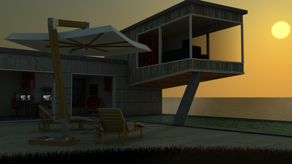 per le viste notturne metti un cielo e mettici un materiale con un gradiente nel canale luminanza dal azzuro scuro al blu ma poco azzurro e po ci fai dei puntini bianchi in photoshop