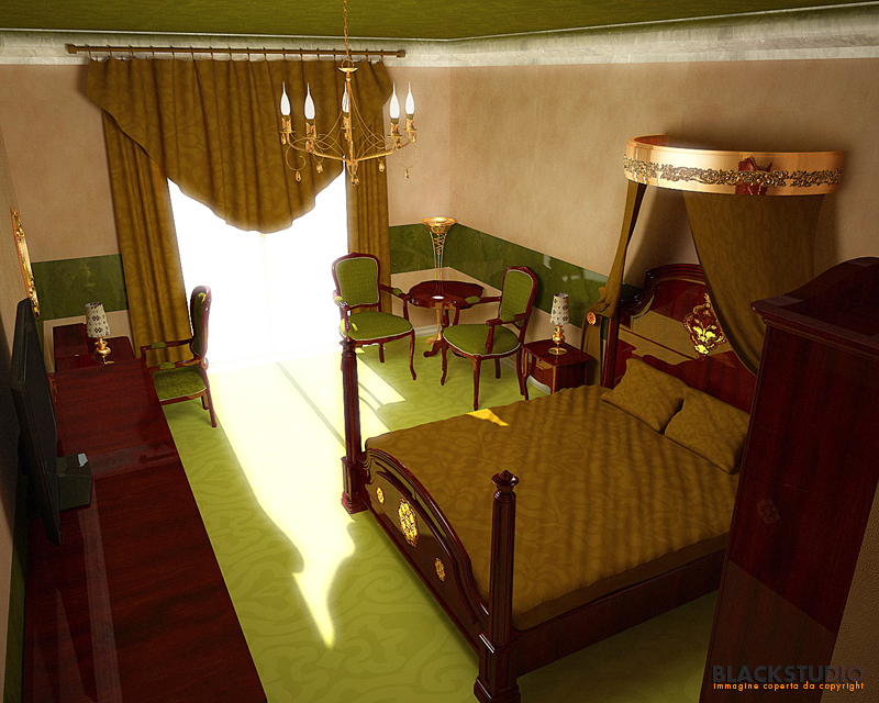 Bè direi che quello che non cerchi lo hai trovato ugualmente, il consiglio che ti do è quello di diminuire la luce che entra dalla finestra, non è reale. Complimenti per il copriletto è ben riuscito; dovresti guardare il retro dell'armadio posto sulla destra, lo devi lavorare di più.