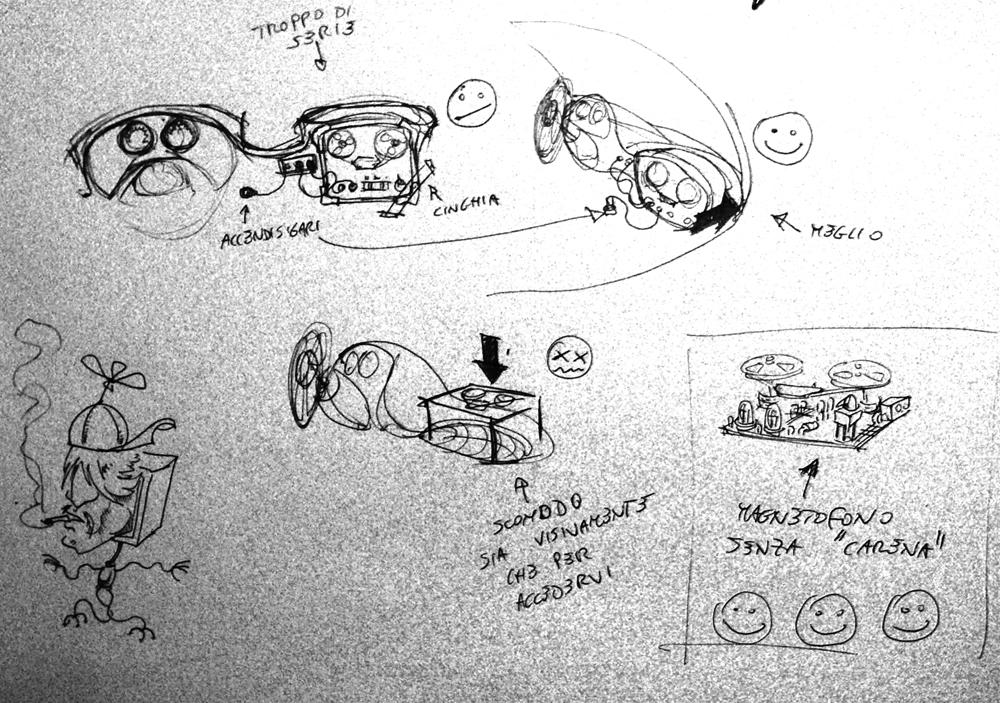 Anche una cosa sul magnetofono: toglierei la radio ... tutto lo spazio a destra occupato, anche in maniera invasiva, debordante, dal magnetofono, un lavoro fatto in proprio da Stige, talmente fanatico dei nastri da mettercisi di suo!