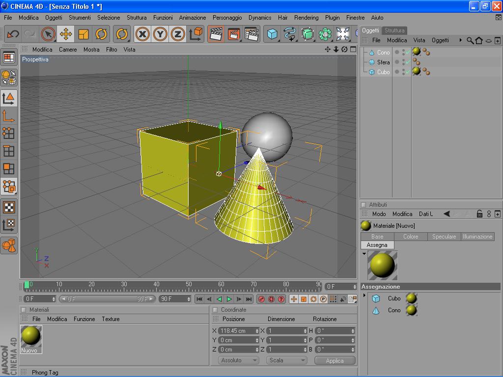 - o, se osservi bene, ogni materiale ha un canale (l'ultimo) chiamato assegnazione: basta che trascini li dentro tutti gli oggetti ai quali vuoi assegnare il materiale.