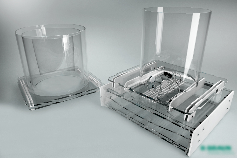 sono apparse quelle ombre sotto i tubi ,la scatola e l'altro apparecchio di plexiglass ,dopo aver fatto il render mi sono accorto di essermi dimenticato di spuntare refractive nella GI caustics