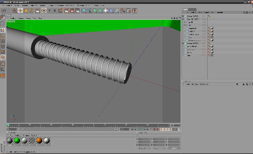 ciao, se se sei sicuro di non poterlo fare con una texture, forse la strada più veloce è con una nurbs di rotazione e una spline che faccia da profilo del filetto.