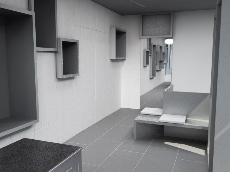 2 le luci sul soffitto non si vedono accese, ho inserito una lucea aerea per ogni rettangolo, in quel punto la sup superficie sul soffitto è tagliata le luci sono visibili...