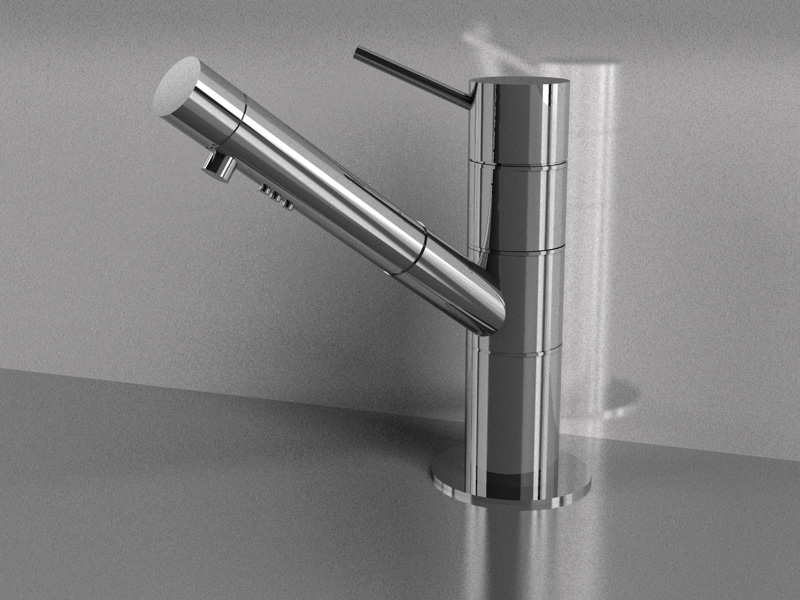 le riflessioni che vedi sul rubinetto sono prodotte da due pannelli luminosi posti dietro la camera visibili alla riflessione, nulla di complicato.