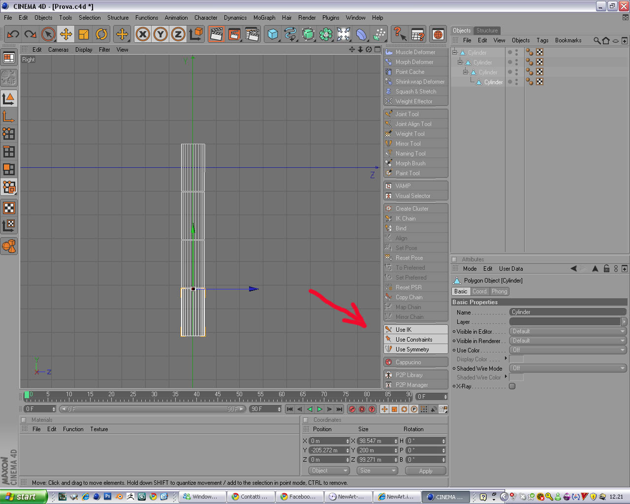 Seguo alla lettera il tutorial, clicco su "use IK"...seleziono l'ultimo elemento della catena.. Ma lui se ne fa per i fati suoi senza trascinarsi dietro nessuno