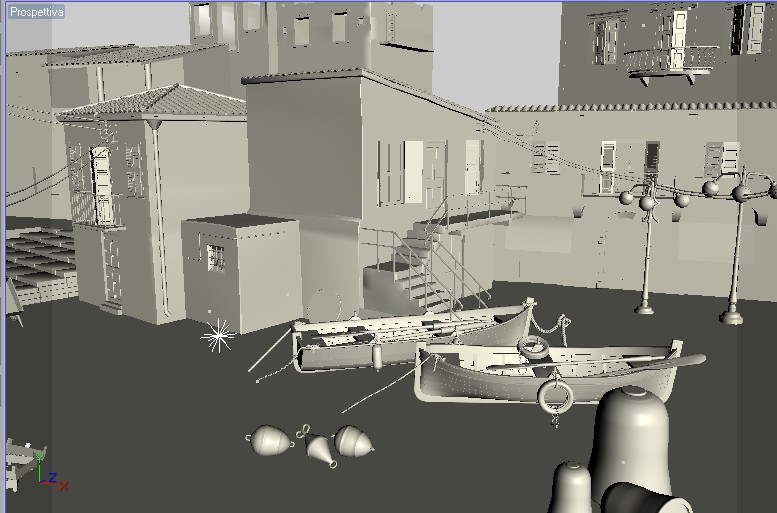 Ridefinite barche con aggiunte di particolari vari, fatta cura dimagrante di alcune migliaia di poligoni agli oggetti che magari ora hanno una mesh non molto pulita nelle parti che non si vedono ma mi importa poco e fatte altre prove di illuminazione aggiungendo più luci.