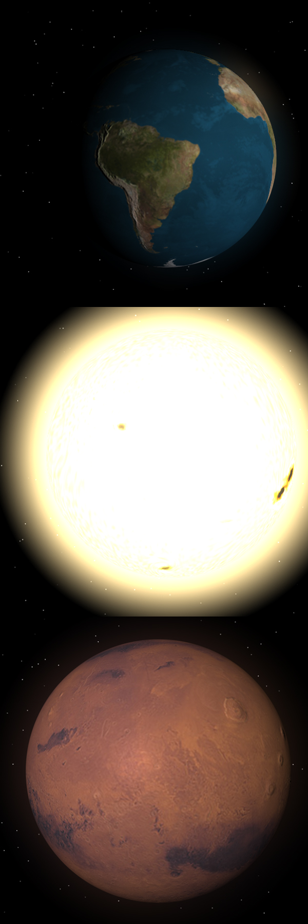 stò cercando di realizzare un sistema solare "funzionante" con sole incorporato ma ho incontrato tre problemi: