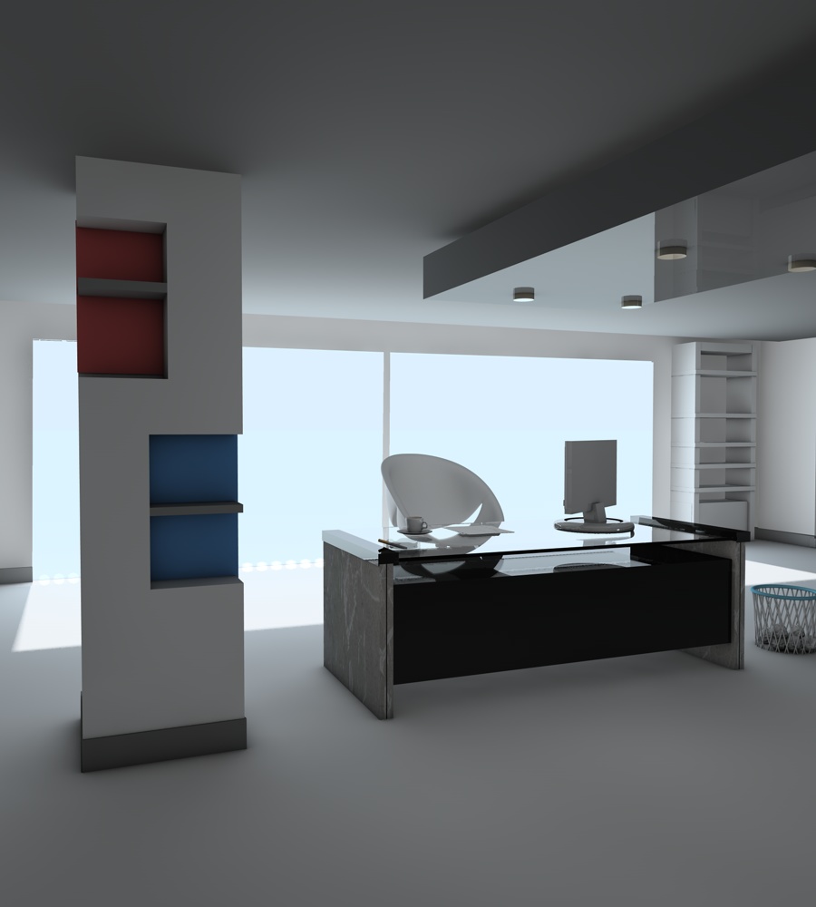 e, consiglio da architetto, riprenderei i colori che hai utilizzato nelle nicchie, per comporre la scrivania