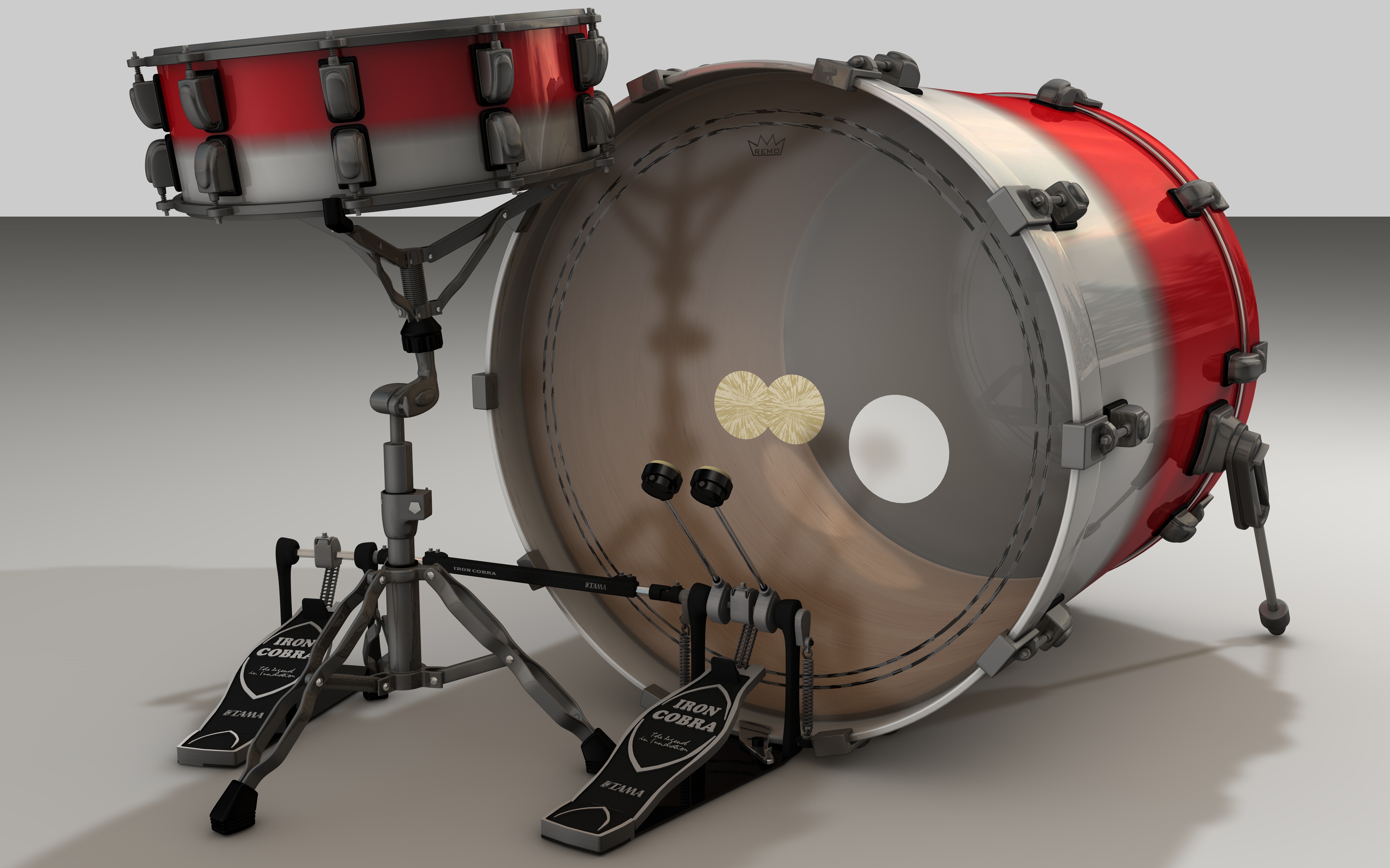 2.il tirante della grancassa non ha la vite,nel senso che c'hai messo un normale cilindro...è un particolare che non si vede nell'immagine finale quindi potresti anche omettere questo ulteriore appesantimento dell'immagine! :)