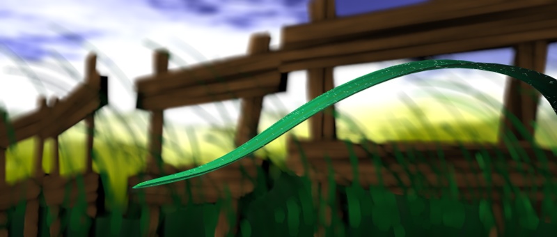 E' giusto un test per capire la velocità delle dinamiche di hair, i fili d'erba sfocati, quello in primo piano, invece, è un modello sotto clothilde.