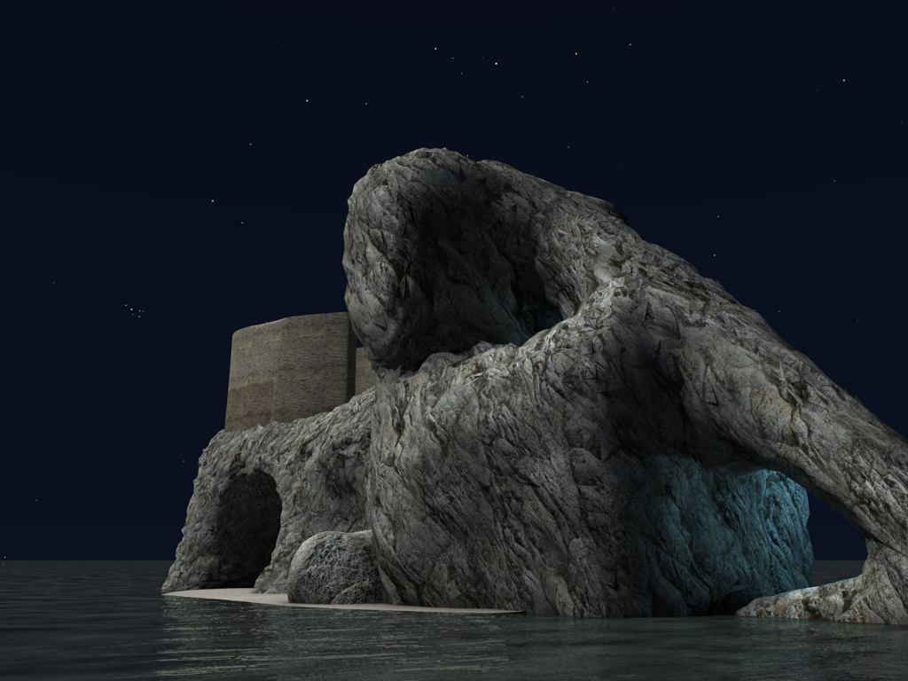 salve a tutti..nel poco tempo libero uso cinema per divertimento.. sto iniziando un modello di paesaggio marino notturno con rudere..appena abbozzato ovviamente come si può vedere ...consigli per migliorare le rocce? esistono programmi specifici per generare rocce?