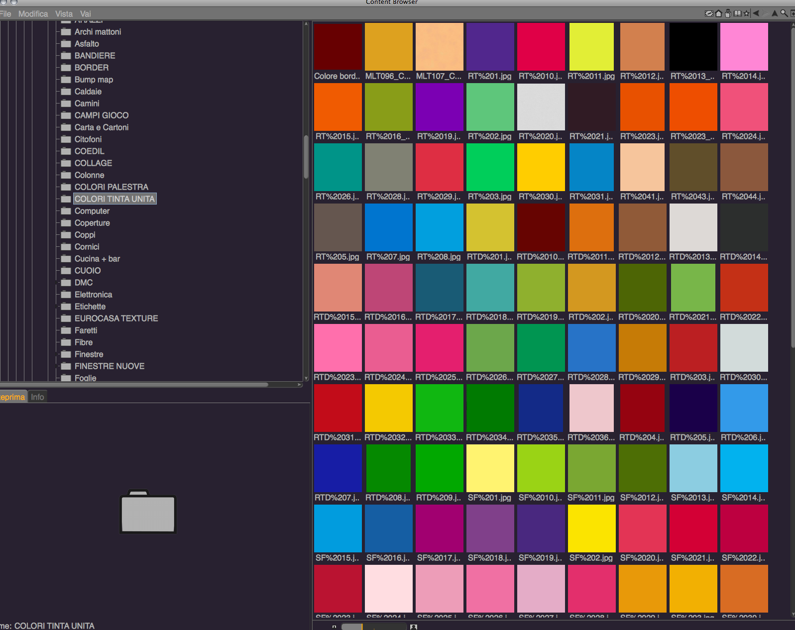 cmq mi pare di aver capito che non si riesce a salvare una "mazzetta" di colorei predefiniti fatti da me tra i colori di cinema, in modo tale che quando apro un nuovo materiale, vaodo in colore, carico la mia mazzetta (come scelgo tra rgb o hsv) e poi pesco ciò che voglio....