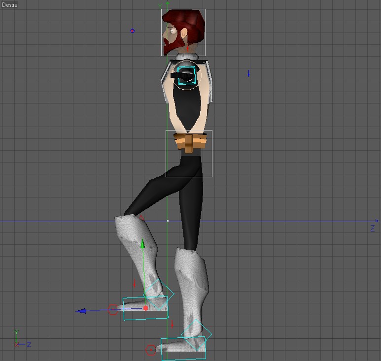 Le armature sono messe in gerarchia alle ossa corrispondendi in modo da seguirne gli spostamenti (es: armatura gamba posizionata in gerarchia all'osso della tibia, armatura avambraccio posizionanta in gerarchia all'osso dell'avambraccio....).