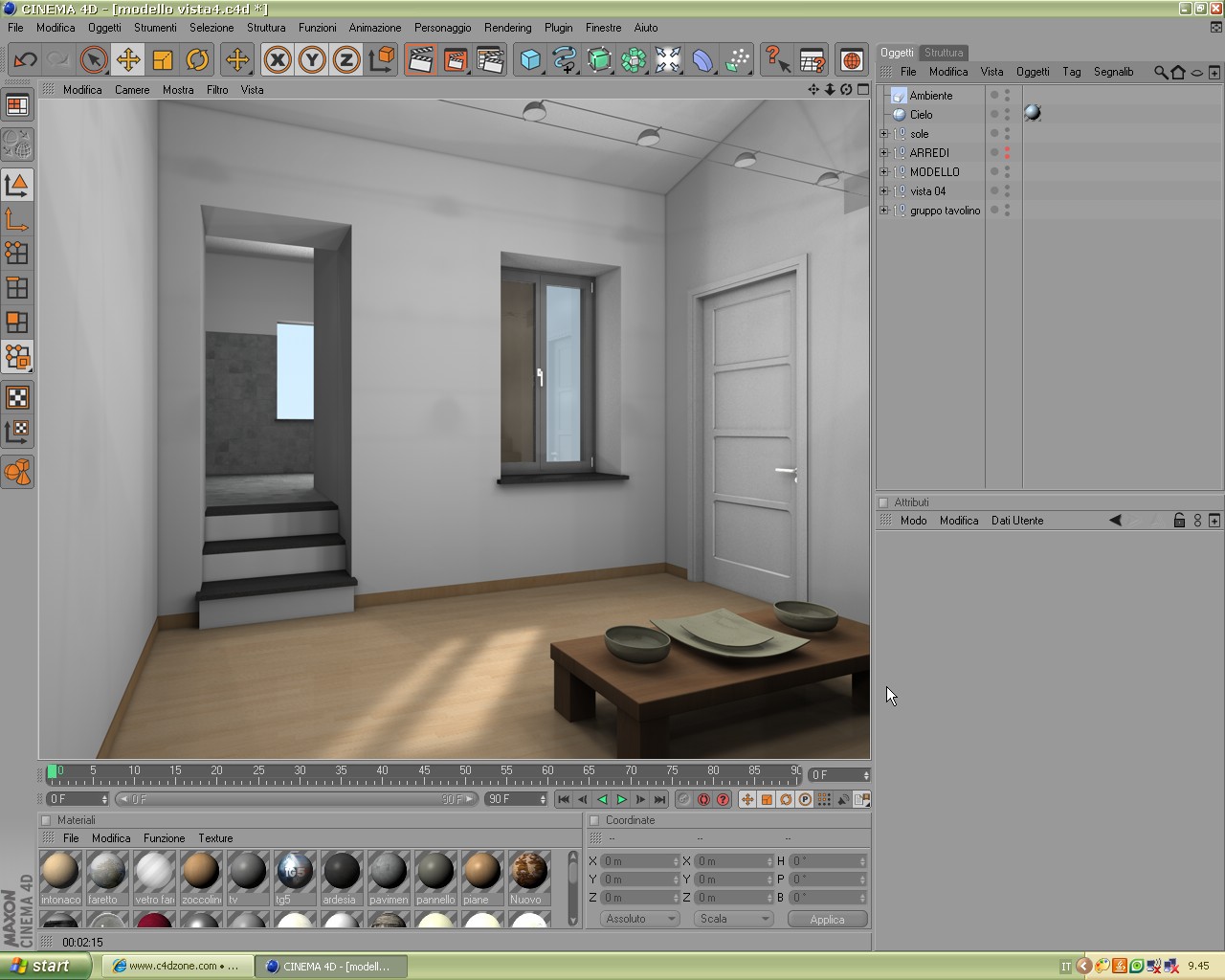 ho inserito una luce che entra dalla finestra con ombre nette per dare l'effetto marcato sul pavimento della luce solare