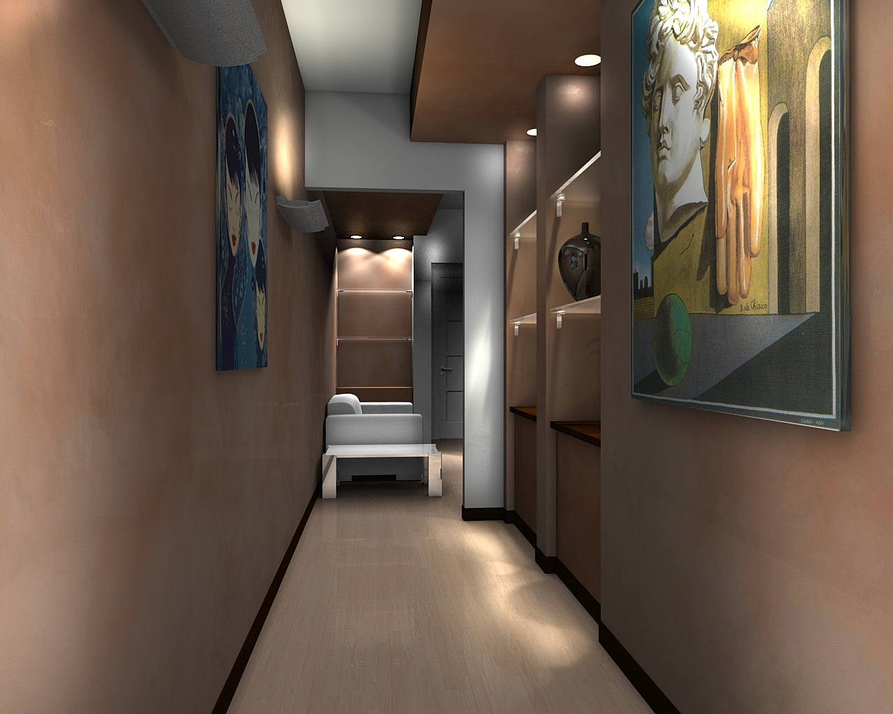i faretti a fianco come le applique per ora ho lasciato le luci iniziali, faro' delle prove utilizzando la stessa tecnica che mi hai consigliato