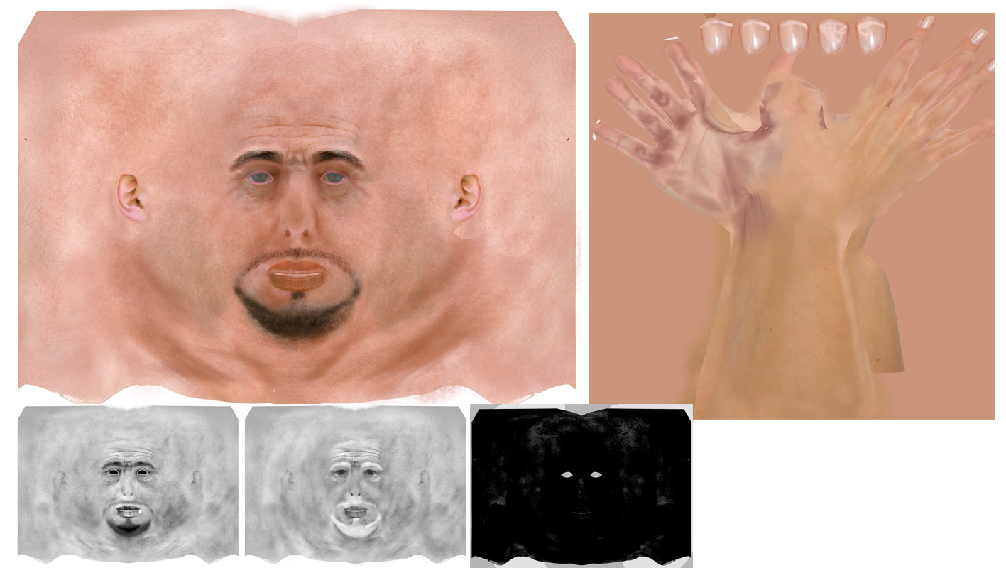 Per ogni texture ho fatto una mappa di bump, specular e refelction , perchè volevo dare quel tocco di lucido-umido" alla pelle, anche se appena accennato!