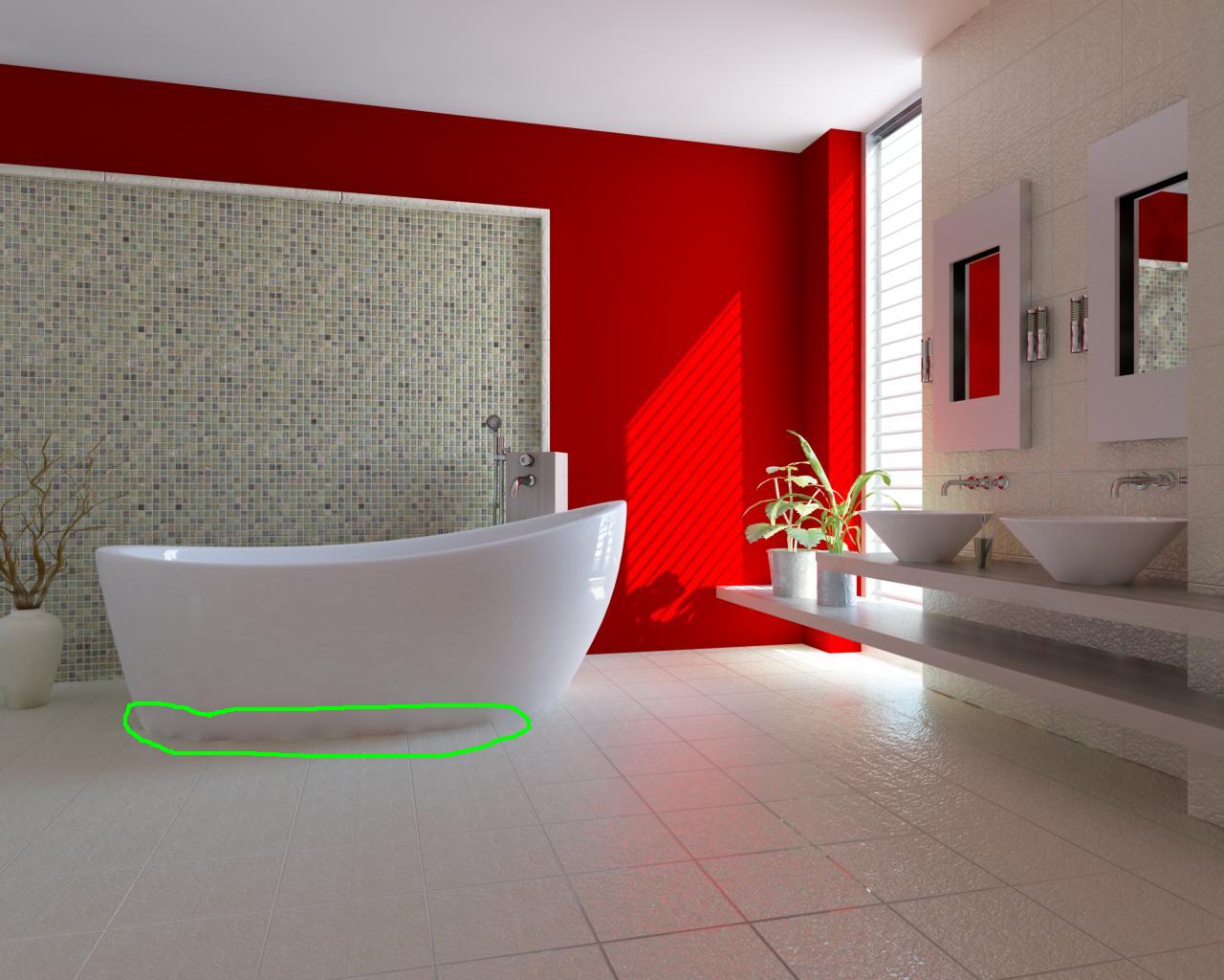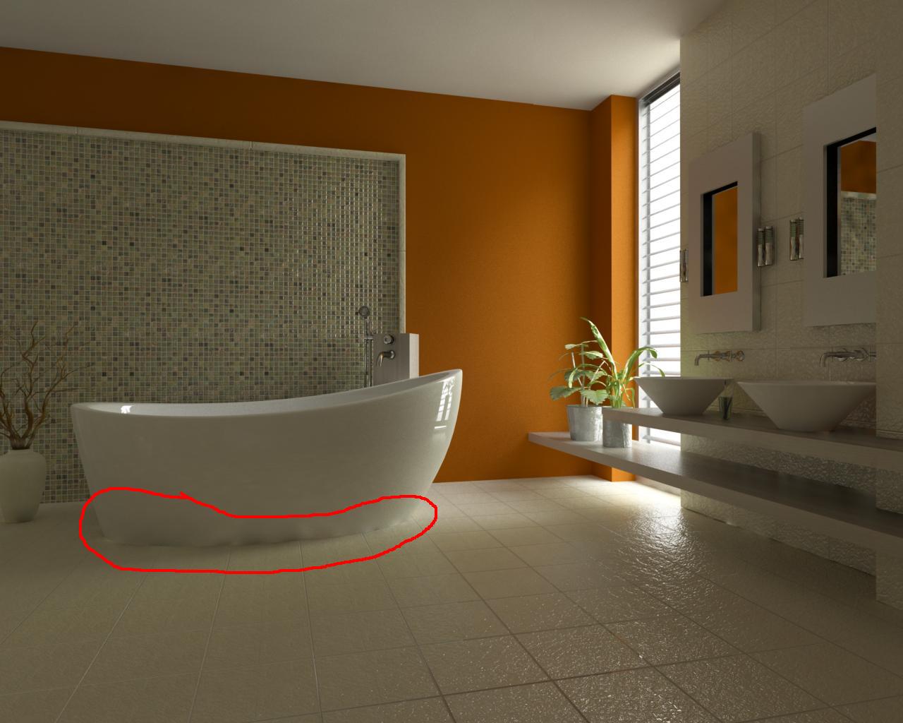In entrambi i casi, come evidenziato nelle immagini nell'attaccattura della vasca con il pavimento mi si creano ombre strane, qualcuno mi sa dire il perchè ?