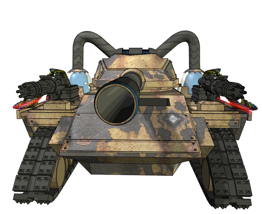 Armamento primario cannone 120mm Oto Melara ad anima liscia con raggio congelante ad azoto liquido potenziato