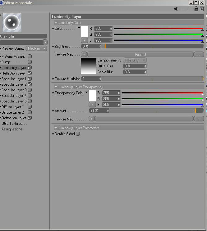 Ho utilizzato anche un materiale trasparente per il vetro.
